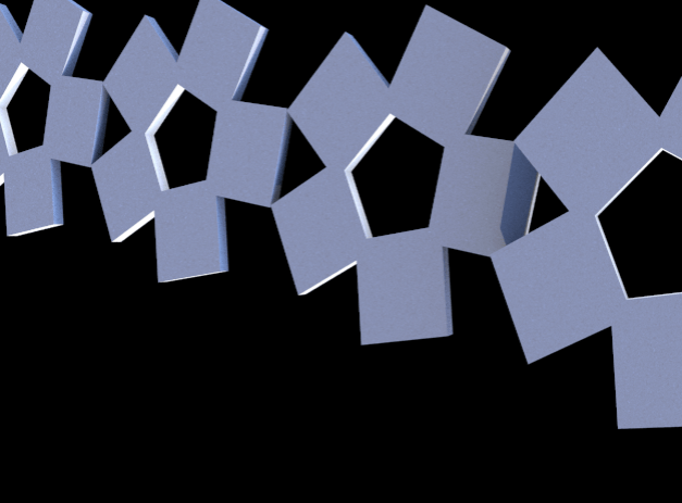 Pentagon 2 is a screen shot of one view of a piece made with cheetah3D, a 3D modeling program for mac.